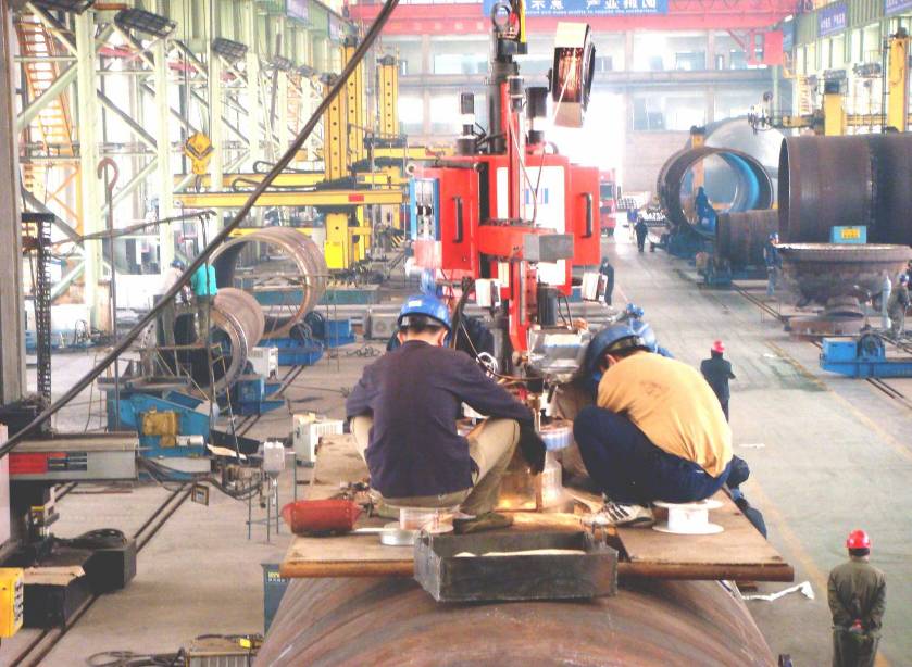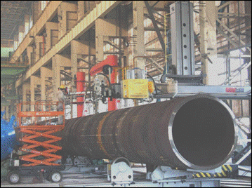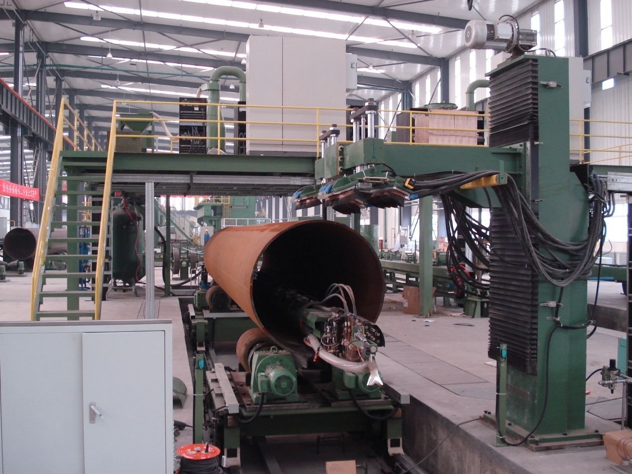 ● 2套(3套)四絲內焊:預焊之后,在鋼管內部進(jìn)行4絲埋弧焊接。