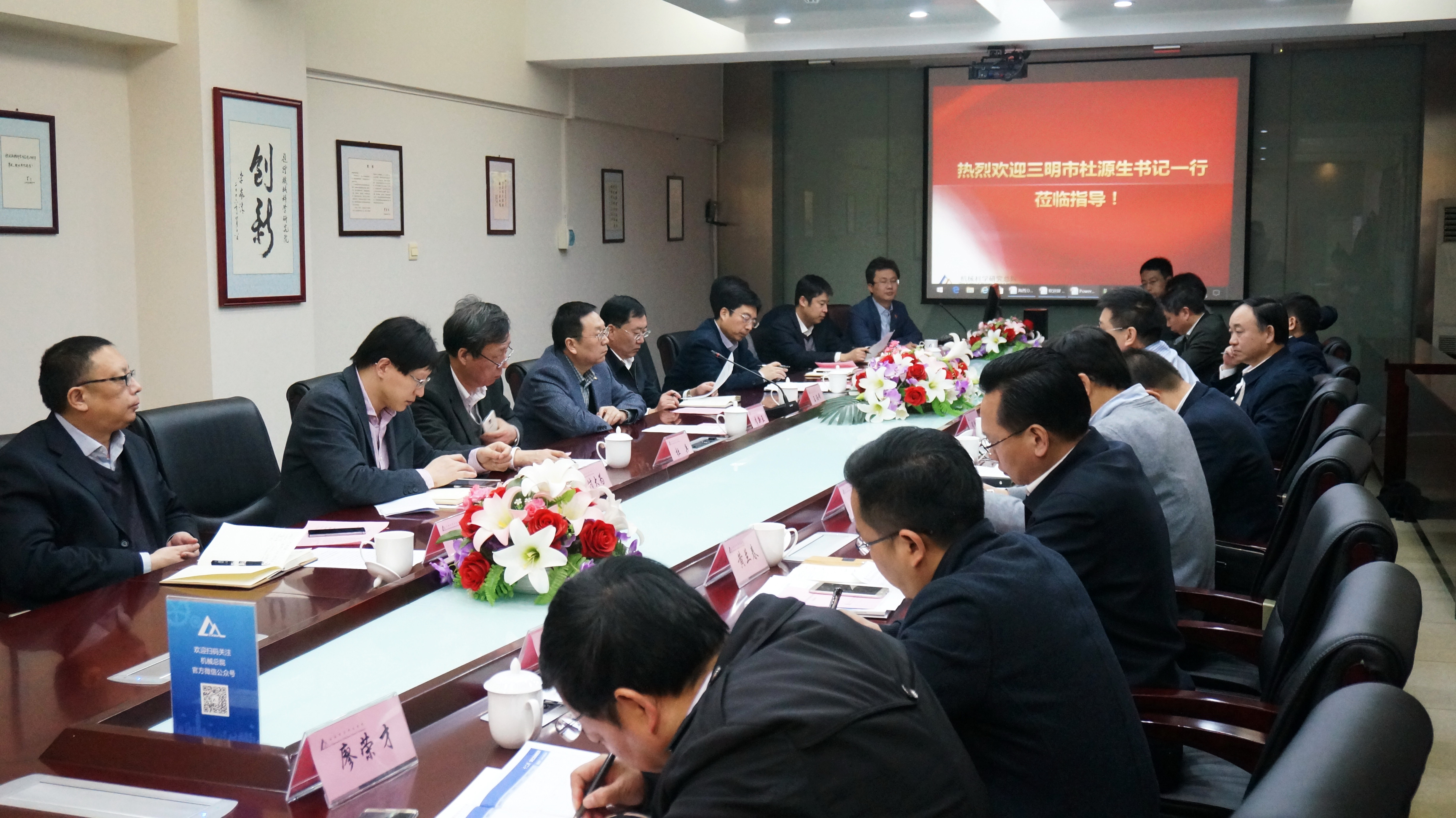 12月15日上午,福建省三明市委書(shū)記杜源生、副市長(cháng)程鵬鷹一行14人到訪(fǎng)機械總院,機械總院副院長(cháng)王西峰、原院長(cháng)李新亞熱情接待了來(lái)訪(fǎng)客人并進(jìn)行了座談交流。三明市委副秘書(shū)長(cháng)溫欣傳、市經(jīng)信委主任王立文、市國資委主任吳擢祥、中共沙縣縣委書(shū)記楊興忠、中共將樂(lè )縣委書(shū)記劉潤宇等領(lǐng)導參加座談。