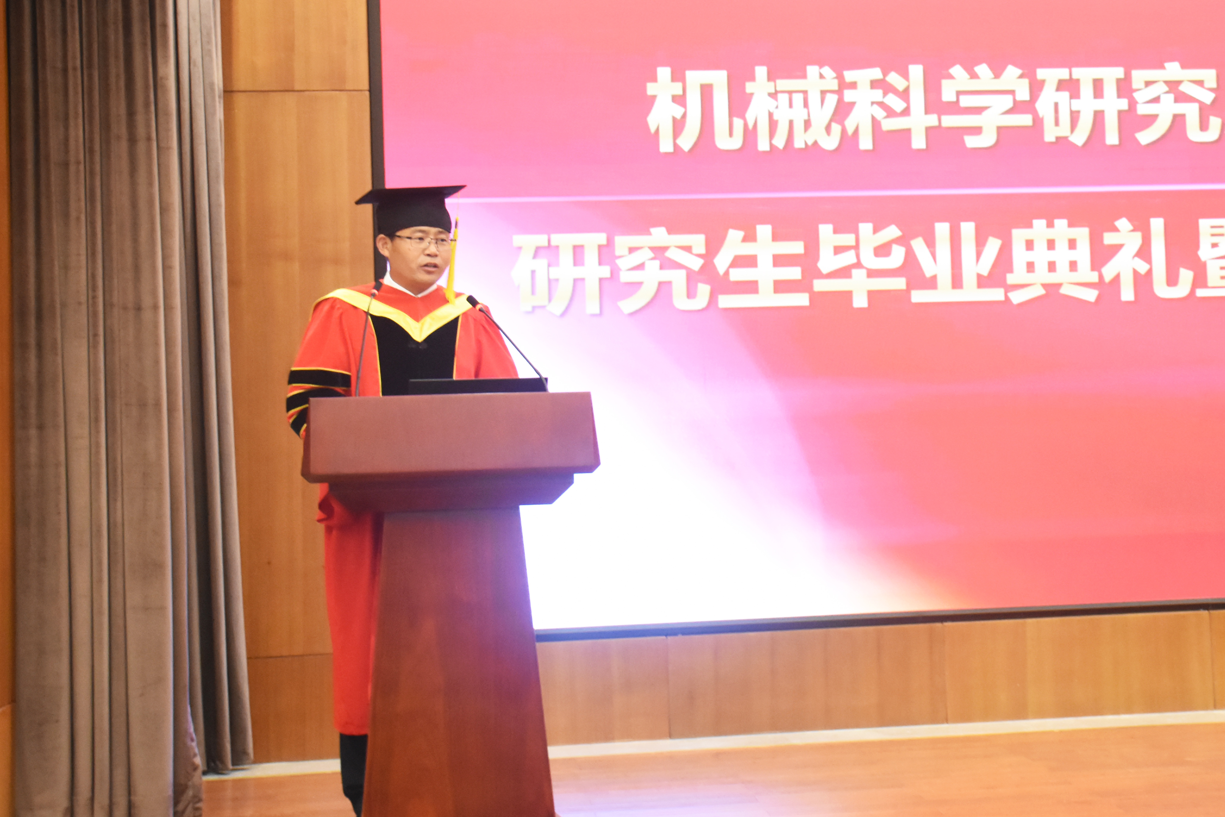 最后,王德成主席作了重要講話(huà),他祝賀所有畢業(yè)生順利畢業(yè)并取得學(xué)位,對導師、各研究生培養單位以及相關(guān)職能部門(mén)的辛勤工作表示感謝,對家長(cháng)們的默默付出致以敬意,并對畢業(yè)生們在今后的學(xué)習工作中提出了三點(diǎn)希望:一是希望同學(xué)們牢固樹(shù)立正確的人生觀(guān)、價(jià)值觀(guān),恪守做人之道,牢記習近平總書(shū)記“愛(ài)國、勵志、求真、力行”的囑托,進(jìn)一步培養自己的高尚情操,提升自己的人格品味;二是希望同學(xué)們不斷學(xué)習、持續提升和全面發(fā)展,永葆進(jìn)取之心,在新時(shí)代有新?lián)敽托伦鳛椋?ldquo;幸福都是奮斗出來(lái)的,奮斗本身也是一種幸福”,“每個(gè)青年都應該珍惜這個(gè)偉大時(shí)代,做新時(shí)代的奮斗者”;三是希望同學(xué)們志存高遠,“自信人生二百年,會(huì )當水擊三千里”,不斷發(fā)揚創(chuàng )新精神和“工匠精神”,腳踏實(shí)地,愛(ài)黨愛(ài)國、愛(ài)院愛(ài)家,奏響更加精彩的人生篇章。