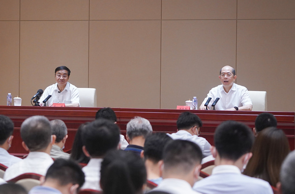 7月17日上午,由中央宣傳部、中央黨史和文獻研究院等共同舉辦、國務(wù)院國資委承辦的學(xué)習貫徹習近平總書(shū)記“七一”重要講話(huà)精神系列專(zhuān)題宣講報告會(huì )(第七場(chǎng))在中國共產(chǎn)黨歷史展覽館舉行。求是雜志社原社長(cháng)李捷作報告,國資委黨委委員、副主任譚作鈞主持報告會(huì )。