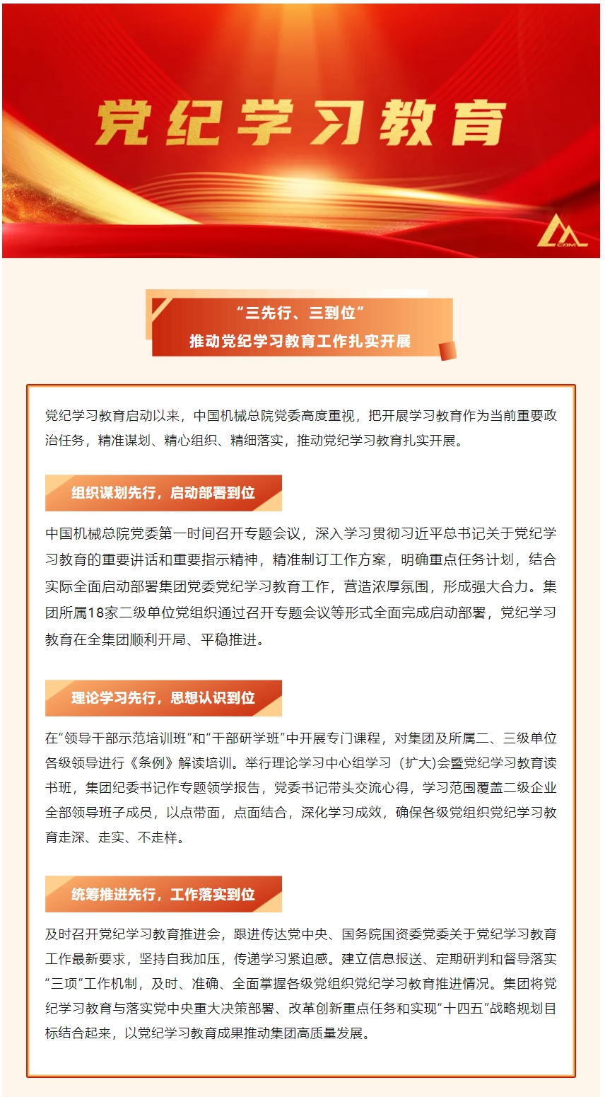 中國機械總院:三先行 三到位 推動(dòng)黨紀學(xué)習教育工作扎實(shí)開(kāi)展
